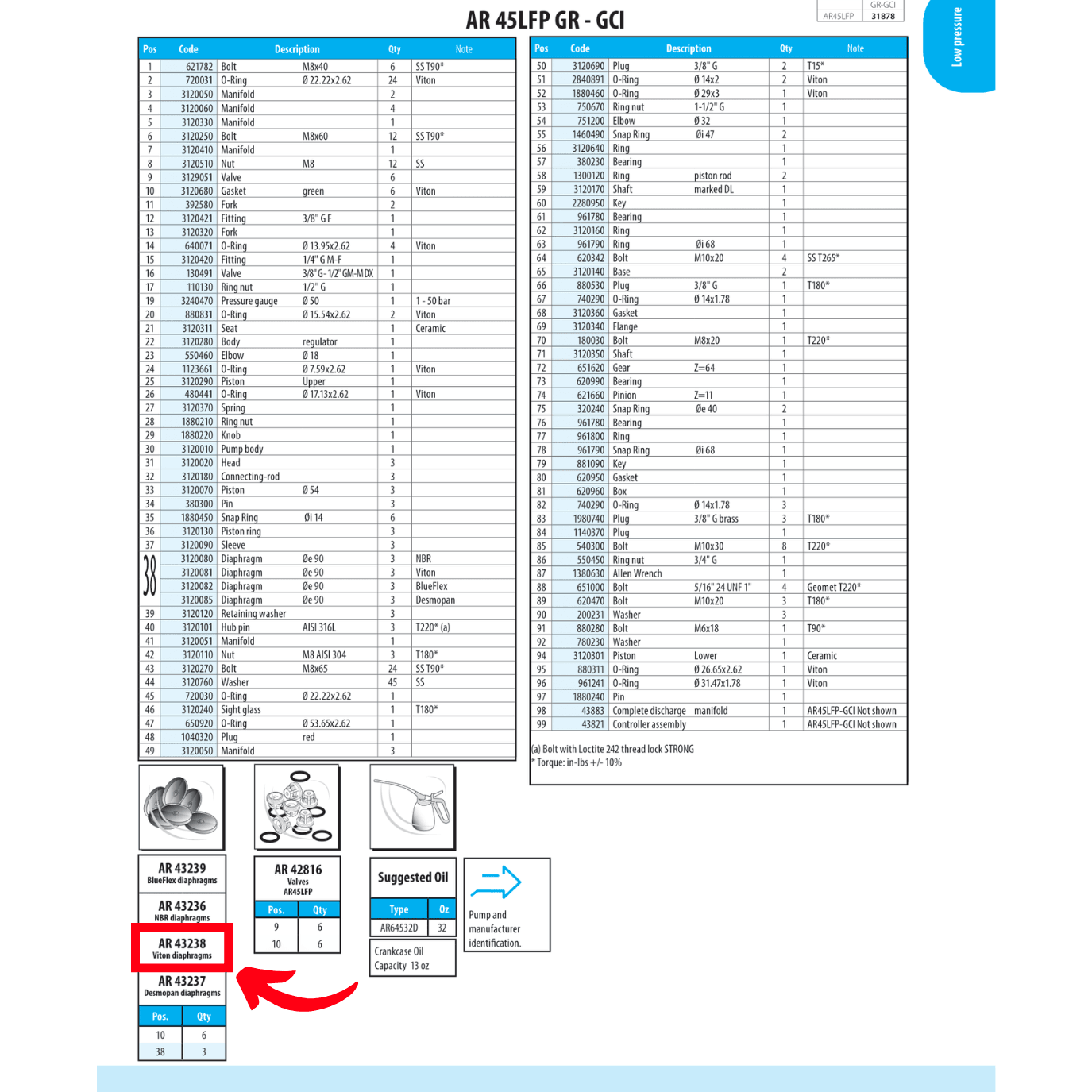 AR45 Diaphragm Kit (AR43238) for AR45 Diaphragm Pump
